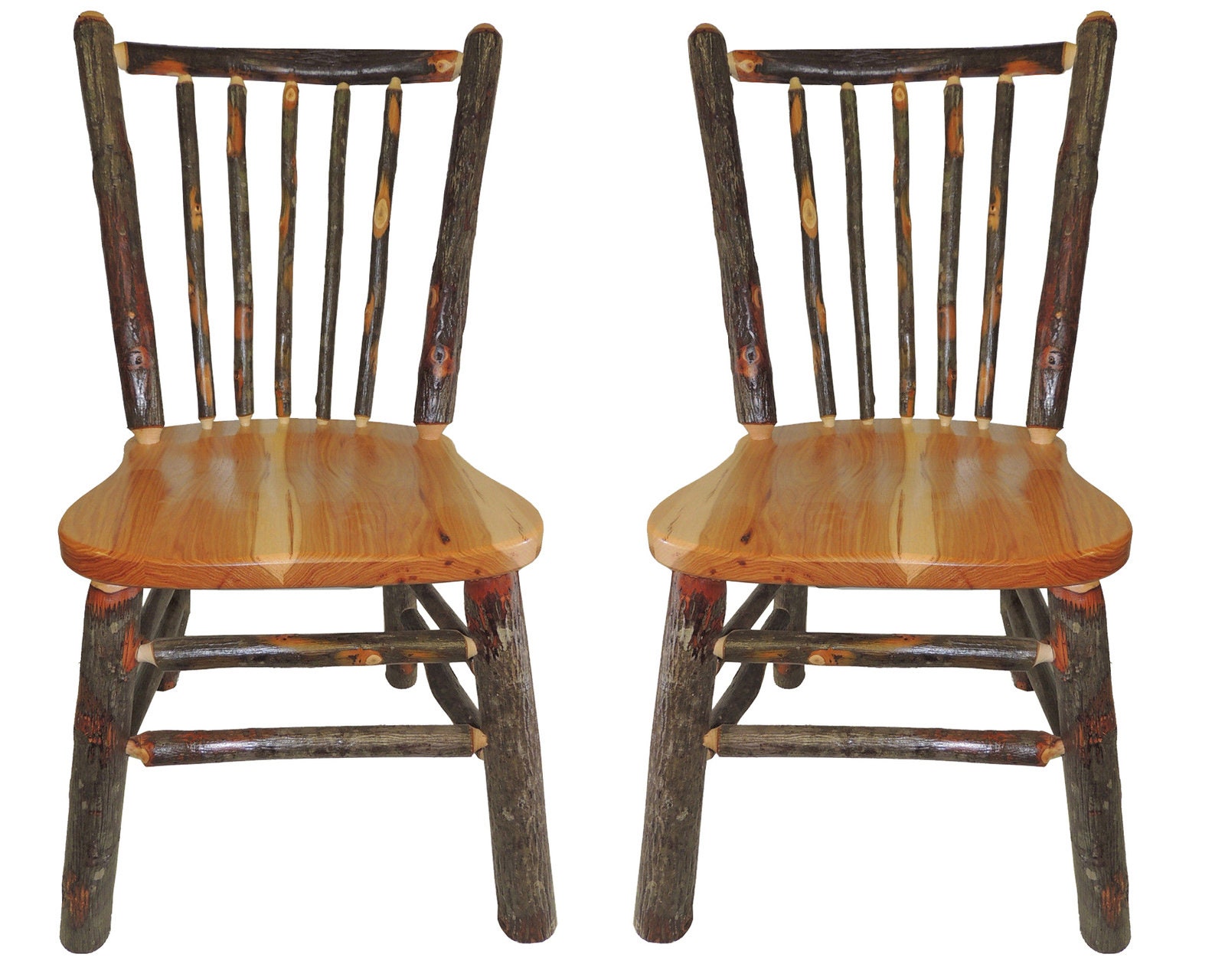 Set Of 2 Rustic Kitchen Chairs With Spindle Back In Hickory Etsy via etsy.com